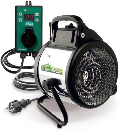 Potente, compacto, ahorrador de energía y seguro de operar: ese es el nuevo termoventilador eléctrico «Palma» de Bio Green. Su robusta carcasa está hecha en gran parte de acero inoxidable sin óxido. Con este diseño atemporal, el calefactor de estacionamiento se adapta fácilmente a cualquier ambiente. También se utiliza “Palma” cuando no hay mucho espacio disponible en el invernadero. Gracias a su forma compacta, sus pies de goma antideslizantes y su práctico asa, se puede utilizar de forma flexible en cualquier lugar.
